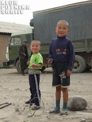 Glavni granicni prelaz izmedju Kirgzije i Kine ide preko planinskog prevoja Torugart. Zbog nekih neshvatljivih birokratskih zavrzlama, prelazak Torugarta moguc je samo preko turisticke agencije, i kosta citavo bogatstvo. U Kinu se, ipak, moze uci i na mala vrata - to je prelaz Irkeshtam. U samom srcu Azije, na severnim obroncima pamirskog platoa, srecu se Kirgizija, Kina i Tadzikistan. Nedaleko od ove tromedje lezhi varoshica Irkeshtam, do koje ne postoji prevoz, jer je put toliko tezak da njime automobili i marshrutke, ni pored najbolje volje, ne mogu. Strmi kanjoni i gudure, visoke litice, iznenadni bezdani i visoki prevoji, poneka usamljena jurta, brda neobicne boje, cudni oblici reljefa, konjanici sa visokim belim kapama, oko kojih mile beskrajna stada ovaca... i kameno-zemljana traka koja vrluda kroz sve to, a koju, u ovim krajevima, nazivaju putem, jer boljeg nemaju. Na tom putu na kraju sveta, u surovim pamirskim vrletima, svoju predugu, zardjalu starost provodi vechiti putnik kamaz. Kamaz Kamaz je prepotopski sovjetski kamion koji je svoj radni vek odavno odradio i koji bi se, da je pravde na svetu, pre vise decenija penzionisao i nestao sa srednjeazijskog visokogorja. Kamaz je rashodovan, ulubljen, sa naprslim staklima, pokvarenom instrument-tablom, i izgleda kao labavo povezana gomila gvozdjurije koja se chudom krece, i koju samo neunishtivo sovjetsko srce i magija drumskih majstora odrzavaju u zivotu. Kretanje po dubokim rupama, preko ogromnog kamenja, cesto pod cudnim uglom u odnosu na tlo i na samom rubu ponora, praceno zaglusnjim treskanjem, dok predmeti lete po kabini a vrata se, malo-malo, sama od sebe otvore (pa onda izvodite akrobaciju zatvaranja, dok se jednom rukom drzite za sediste a drugom vuchete vrata, trudeci se da, pri tom, sami ne ispadnete iz kamiona) jedini je nacin da se predje ovaj planinski masiv. Pored puta se cesto mogu videti sedobrati starci i bakice sa sharenim maramama kako strpljivo chekaju da naidje kamaz i poveze ih do sledeceg sela. Od Osha do sela Guljcha brzo uhvatismo stop, a u Guljchi nas konachno pokupi i legendarni kamaz, o kome smo, do tada, samo slushali. Nekoliko chasova kasnije, posle divljachkog treskanja po planinskim dzombama, na kamazu je konachno prepukla nekakva osovina, te smo, neplanirano, par sati proveli u selu Sari Tash, sa kucama od balege, pogledom na vrh Lenjina, i malim grobljem na kom se, sa svakog groba, vijori po jedan konjski rep. U sumrak je nesrecna osovina konachno zamenjena, dnevnu vrucinu smenila je nocna 'ladnoca, i mi kretosmo dalje, u razgovoru sa nashim krupnim kamazistom, koji se povremeno zalio na sudbinu koja mu je dosudila ovu bestragiju (pri chemu bi rukom neodredjeno mahnuo u pravcu okolnog pejsazha koji je tonuo u noc), sa nostalgijom prichao o sovjetskim danima, pripovedao o svom teshkom poslu, strogoj zheni, proslogodisnjoj revoluciji (kada je predsednik Akaev, pred argumentima kuke i motike, izleteo iz kirgiskog parlamenta), i u tim sitnim razgovorima dotruckasmo se do varoshice Irkeshtam, ili, ako volite, Irkech-tam. Irkeshtam Ono sto neupucenom putniku mozda izgleda kao otpad metala, scenario za postapokalipticni SF film ili davno napushtena industrijska zona, zapravo je mali grad napravljen od kamionskog groblja, u kome ljudi zive u razvaljenim olupinama drumskih divova. Kuce su stare kamionske prikolice, naslagane gume sluze kao ulazne stepenice, i obicna ljudska svakodnevica normalno teche medju hrpama zardjale gvozdjurije, na ulicama natopljenim crnim motornim uljem. Kako smo stigli u sasvim sitne sate, nash kamiondzija nas je smestio u prikolichasti dom svojih prijatelja, gde, posle obilne vechere zalivene sa nekoliko cashica, brzo utonusmo u san, ni ne znajuci u kakvo smo neobicno mesto upali.